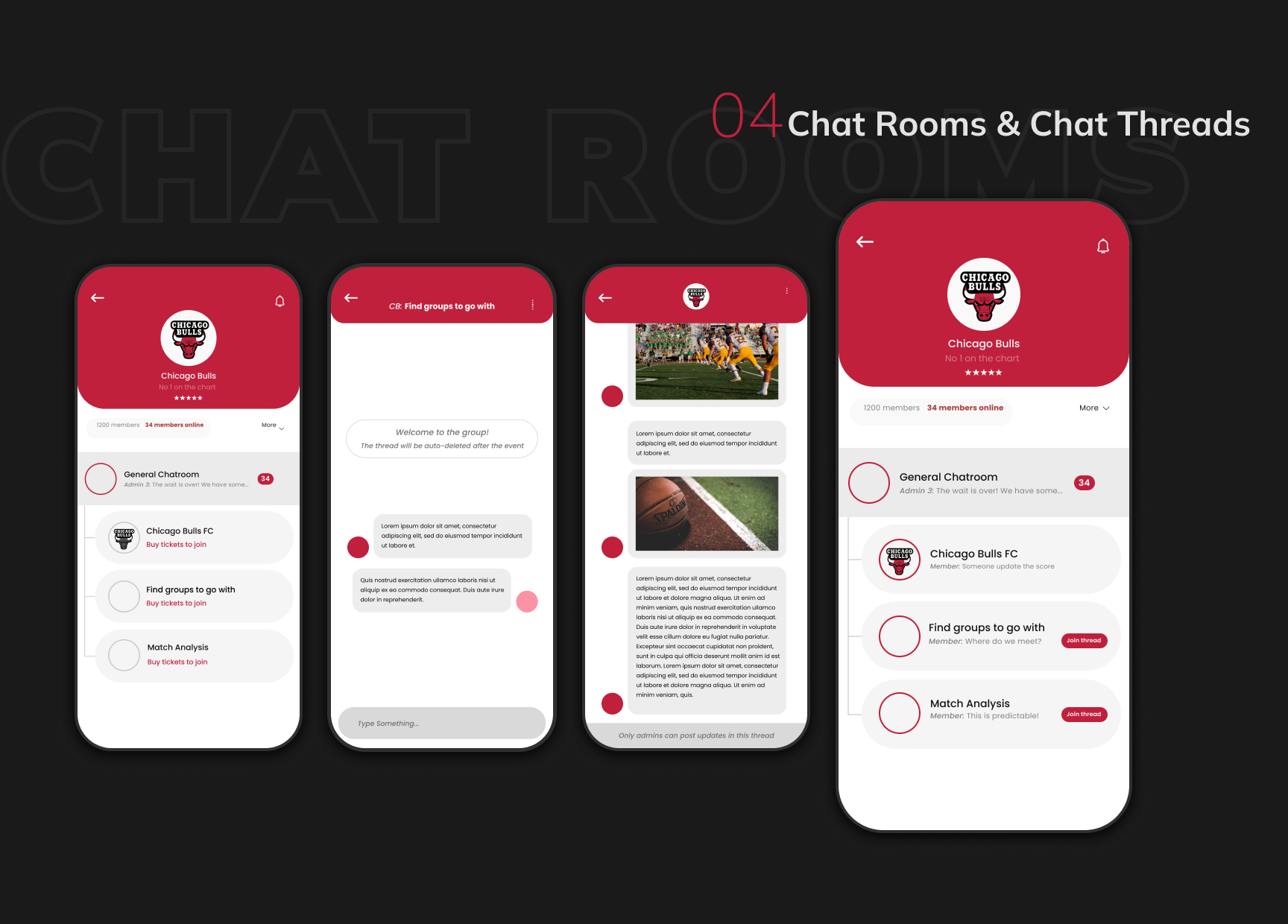 We could further use the sketches to improve the user flow, which helped us build the wireframe. Like all other ticketing platforms, our platform offers basic features like buying and selling features. Users get to join their favorite sports team and join a larger community. Each team gets its own channel with different chat threads for various purposes. The overall experience is meant to be seamless and hassle-free, and the user can decide how much of the app they want to use.