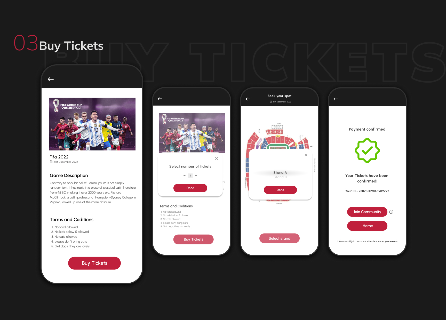 Sportify is a cohesive and holistic solution for fans that caters to both event participation and community engagement. Its a hassle-free platform that lets them look up events, know more about the events, and also book tickets for them. The platform also allows the users to be a part of interest-based communities, and help them find other people who support the same teams as they do and can attend games with them.